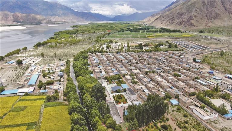 走進(jìn)山南市乃東區(qū)金魯社區(qū),一排排藏式小院整齊排列,村前的雅魯藏布江緩緩流淌。
