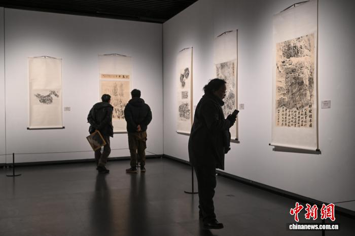 1月6日,青海省玉樹藏族自治州玉樹市“遠(yuǎn)古史畫”巖畫石刻拓片藝術(shù)展在西藏美術(shù)館開幕。據(jù)悉,此次展覽是玉樹市歷史文化研究院近十年考古拓印工作的成果結(jié)晶,展覽精選百余幅拓片精品,時(shí)間跨度從青銅時(shí)代延伸至吐蕃時(shí)期。展品以牦牛、騎者等高原特色形象和狩獵、祭祀等先民生活場(chǎng)景為核心,清晰還原了巖畫粗獷古樸的鑿刻紋理,生動(dòng)呈現(xiàn)了多民族文化交融的歷史脈絡(luò)。展期將持續(xù)至2月10日。圖為觀眾欣賞展覽中的巖畫石刻拓片作品。中新社記者 貢嘎來松 攝