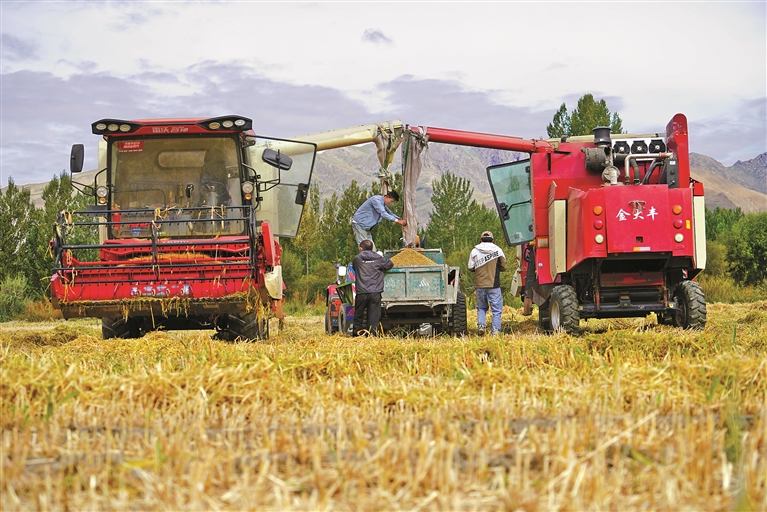 圖為乃東區(qū)群眾正在秋收(資料圖片)。