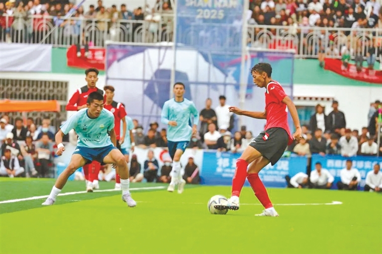 圖為乃東區(qū)舉辦的“石榴籽杯”草原足球邀請(qǐng)賽。