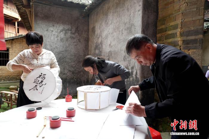 傳統(tǒng)手工花燈手藝人通過裁竹、剖篾、糊紙、彩繪等二十余道工序,趕制傳統(tǒng)手工花燈。永定區(qū)融媒體中心供圖
