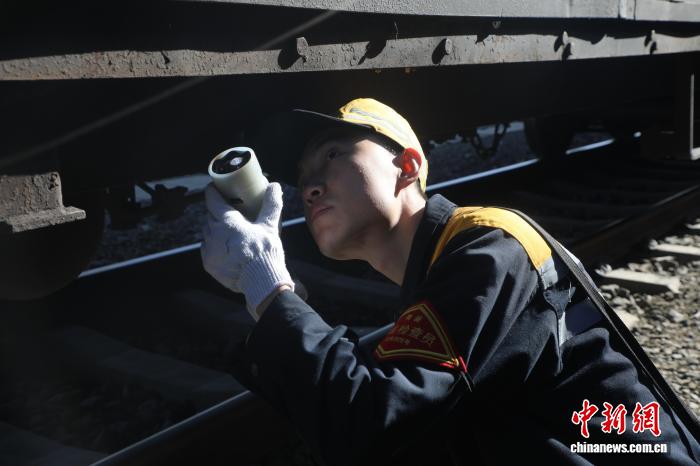 3月3日,正值元宵佳節(jié),位于青藏鐵路拉薩西站海拔3850米的股道上停靠著一列列貨運(yùn)列車(chē),等待編組、解體或裝載貨物等作業(yè),轟鳴的機(jī)車(chē)此起彼伏,呈現(xiàn)一派繁忙景象。貨檢員柴超和鄧桓整理好工作服,拿起拍照手電、對(duì)講機(jī)和工具包,開(kāi)始了接班第一輪的“巡檢”。