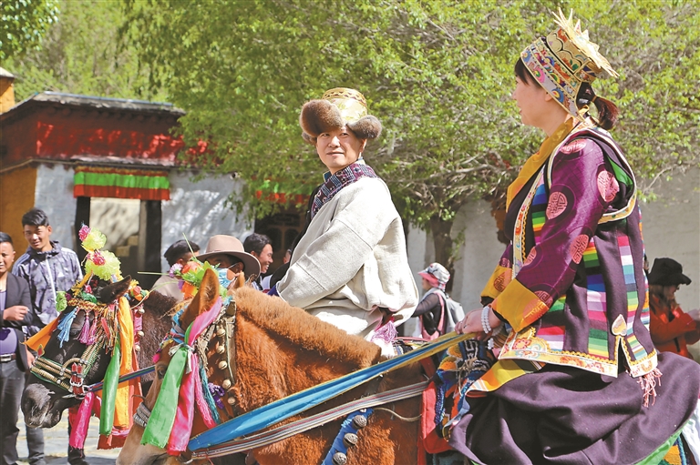 游客在瓊結(jié)縣步行街體驗(yàn)騎馬。倫珠澤仁 攝