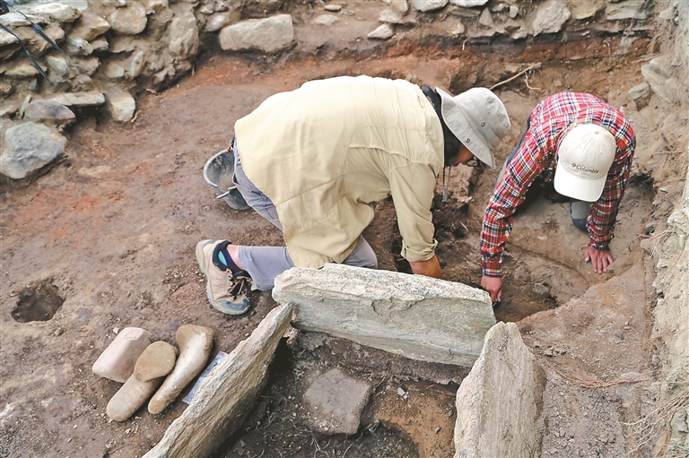 瓊結(jié)縣下水鄉(xiāng)幫嘎遺址考古發(fā)掘現(xiàn)場(chǎng)(資料圖片)。倫珠澤仁 攝