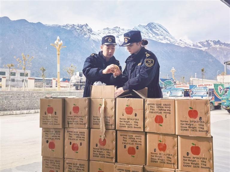 在吉隆口岸聯(lián)檢大樓,海關關員緊緊盯著X光機顯示屏,常年深耕一線練就的“火眼金睛”銳利如炬,不放過任何一件入境行李物品、任何一處隱藏細節(jié)疑點,截獲臺上整齊擺放著水果、奶酪等禁止攜帶入境物品,等待進一步處置。