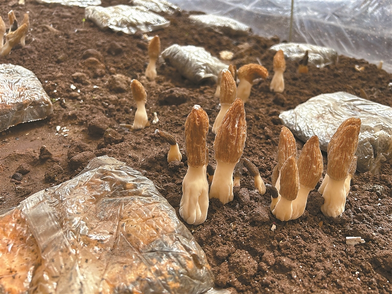 圖為破土而出的羊肚菌。記者 貢秋曲措 攝