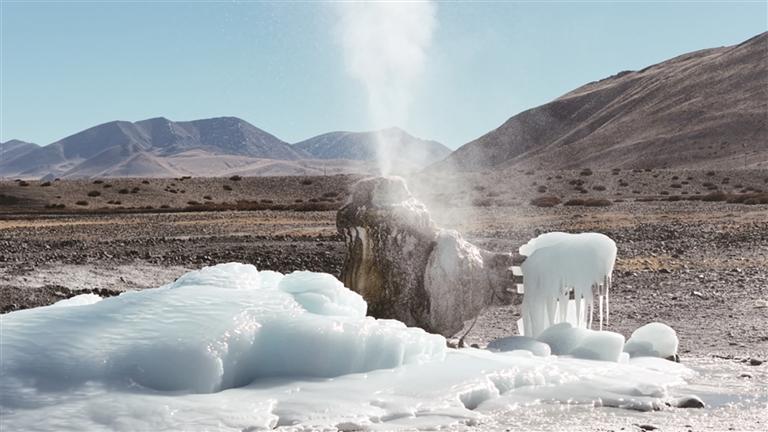 冬季是觀賞朗久地熱的絕佳季節(jié)。滾燙的熱水(水溫可達85攝氏度以上)噴涌而出,遇到零下二三十度的嚴寒空氣,瞬間凝結成冰。熱水還在繼續(xù)噴涌,冰層卻在不斷加厚,形成巨大的冰柱、冰幔,在荒蕪的高原上散發(fā)著魔幻的色彩,宛如外星秘境。據(jù)了解,朗久地熱屬于高溫地熱資源,富含多種礦物質。