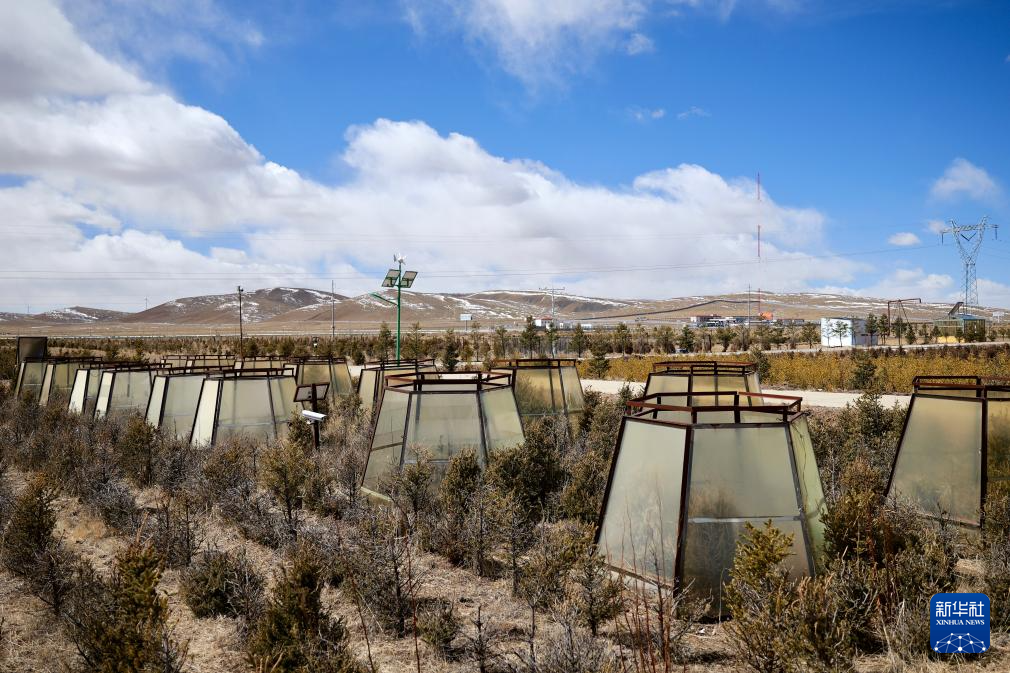 西藏那曲地區(qū)城鎮(zhèn)植樹關鍵技術研發(fā)與綠化模式示范項目示范基地中的頂開式濾光溫室。新華社記者 周昱龍 攝