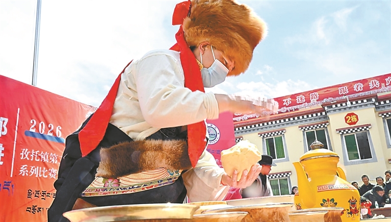 洛隆縣群眾展示酥油制作技藝。記者 貢秋曲措 攝