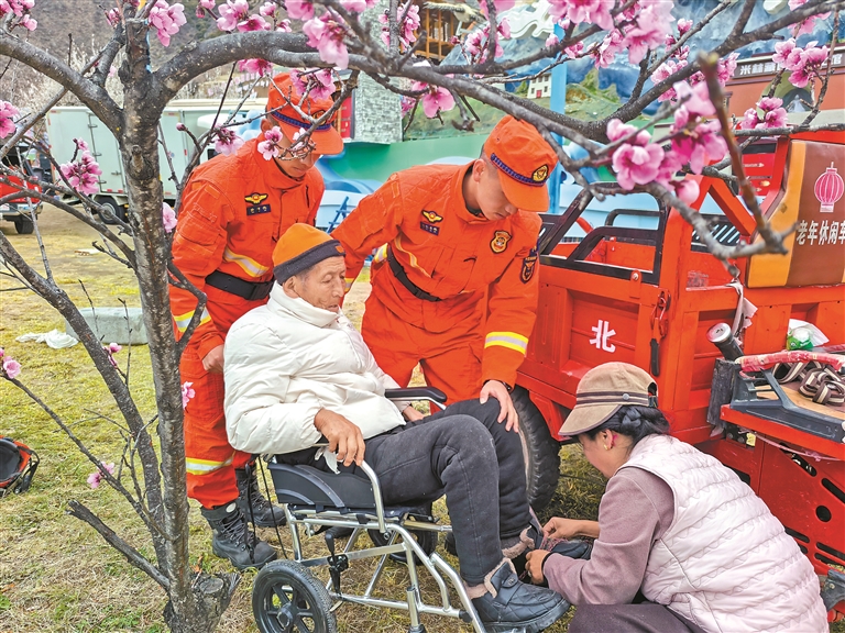 林芝消防救援機(jī)動(dòng)支隊(duì)巴宜大隊(duì)指戰(zhàn)員為群眾提供暖心幫扶。 通訊員 扎西頓珠 攝