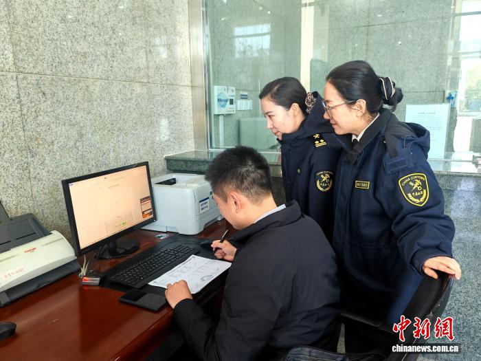圖為海關(guān)工作人員提供相關(guān)服務(wù)。拉薩海關(guān) 供圖