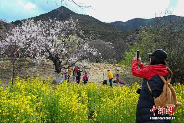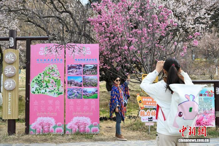 4月3日,游客在嘎拉村拍照留念。西藏林芝市嘎拉村被譽(yù)為“林芝桃花第一村”,是林芝市最佳的賞花地之一。中新社記者 貢嘎來(lái)松 攝