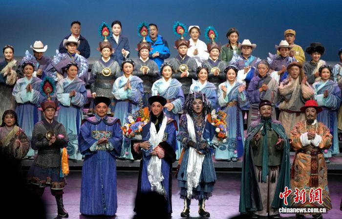 圖為藏·粵史詩劇《駐藏·張大人》拉薩演出后,演員謝幕。李林 攝