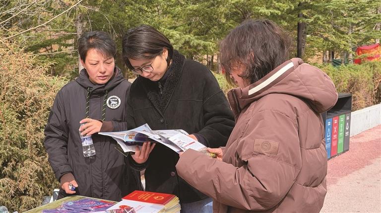 沿著公園步道,拉薩市人民防線辦公室 、公安局、司法局、生態(tài)環(huán)境局等多個(gè)部門(mén),依次設(shè)立了宣傳展位。工作人員穿梭在人群中,耐心地向過(guò)往群眾發(fā)放宣傳手冊(cè),細(xì)致講解網(wǎng)絡(luò)安全、防火防災(zāi)、生態(tài)保護(hù)、防范詐騙等貼近日常的安全知識(shí),路過(guò)的市民紛紛駐足聆聽(tīng)、主動(dòng)咨詢(xún),時(shí)不時(shí)拿起宣傳資料翻閱。