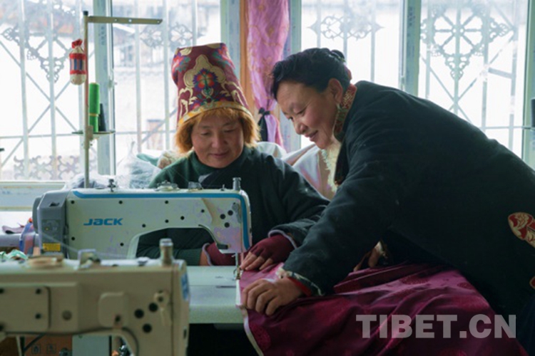 “我以前根本不會做衣服,多虧了扎西次措老師的指導(dǎo),我的手藝長進(jìn)很大,手工做出來的服飾帶來的收益不少,有了穩(wěn)定收入,家里兩個大學(xué)生的學(xué)費、生活費都不愁?!辈际袐D聯(lián)“婦女創(chuàng)業(yè)就業(yè)基地”里,次央巴措正在熟練地使用縫紉機縫制一件藏裝的邊飾,她是一名單親母親,曾經(jīng)沒有工作,要供兩個孩子上學(xué),生活很困難,扎西次措得知情況后,專程上門做思想工作,并邀請次央巴措到公司來工作。