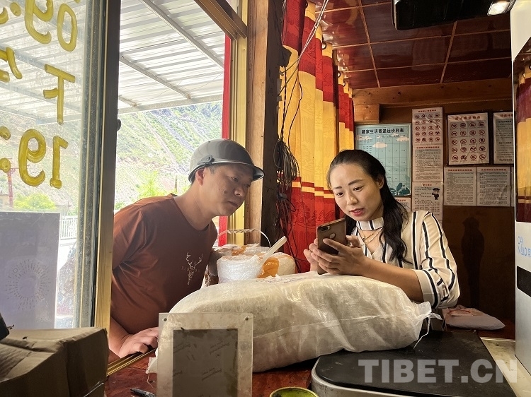 圖為曲孜卡鄉(xiāng)達許村快遞收發(fā)站工作人員斯郎擁珍 攝影:許娜