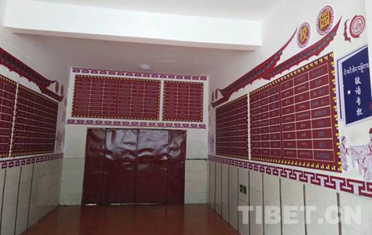 圖為西藏自治區(qū)那曲市比如縣羊秀鄉(xiāng)小學(xué)為了幫助孩子們隨時(shí)隨地學(xué)好藏語(yǔ)敬語(yǔ),精心布置了敬語(yǔ)專欄 攝影:米瑪旺久