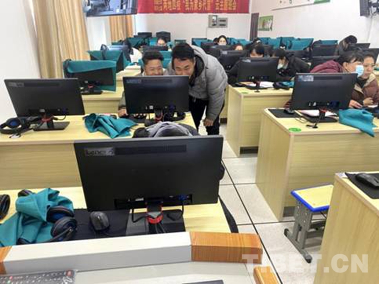 圖為西藏自治區(qū)那曲市比如縣達(dá)塘鄉(xiāng)的學(xué)生家長(zhǎng)們和浙江省紹興市上虞區(qū)的學(xué)生家長(zhǎng)們一起通過(guò)互聯(lián)網(wǎng)開“我為家鄉(xiāng)代言”云主題班會(huì) 攝影:次仁達(dá)吉
