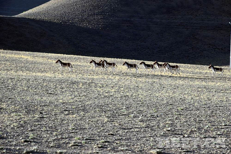 在從獅泉河去往改則縣城的路上,我們看到了一群藏野驢在羌塘草原上無憂無慮地奔跑,它們身姿矯健,棕黃色的背部和白色的腹部在朝霞的映襯下顯得格外美麗,那種獨屬于原野的又颯又帥的感染力令大家不由自主地感嘆:太壯觀了!