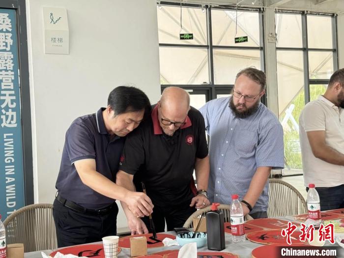 國(guó)際友人學(xué)寫毛筆字。呂兆元 攝