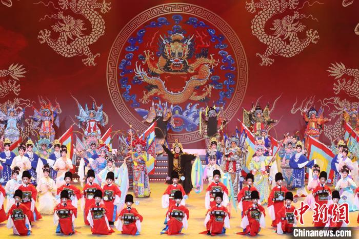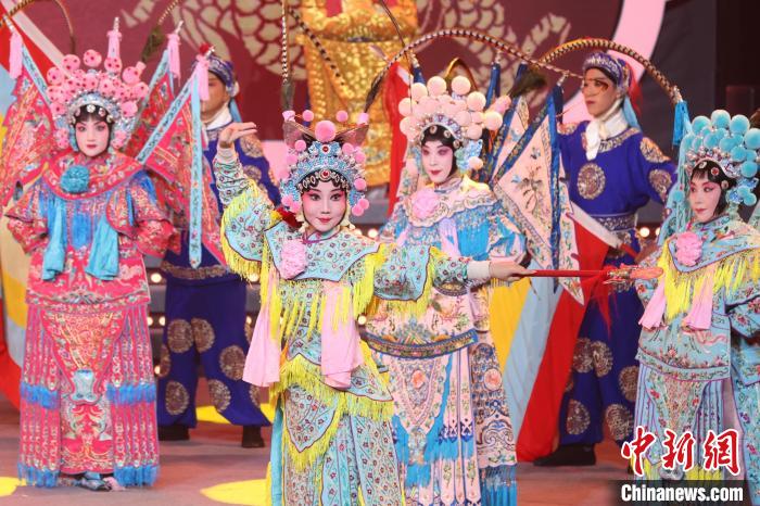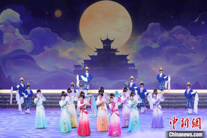 9月10日晚,2024江蘇中秋戲曲晚會在江蘇廣電荔枝大劇院上演,晚會緊扣“中秋”和“戲曲”兩大元素,將傳統(tǒng)節(jié)日內(nèi)涵與戲曲藝術(shù)融為一體,戲曲界各劇種名家陳少云、趙志剛、竺小招、周東亮、李奕潔、陳澄、李曉旭、施夏明等“梅花獎”“紫金文化獎章”“文華表演獎”獲得者輪番登臺,與近年來涌現(xiàn)出的優(yōu)秀青年演員同臺演出,凸顯戲曲文化的傳承與創(chuàng)新,為觀眾帶來一個流光溢彩的戲曲之夜。圖為戲曲演員們在舞臺上表演節(jié)目。中新社記者 泱波 攝
