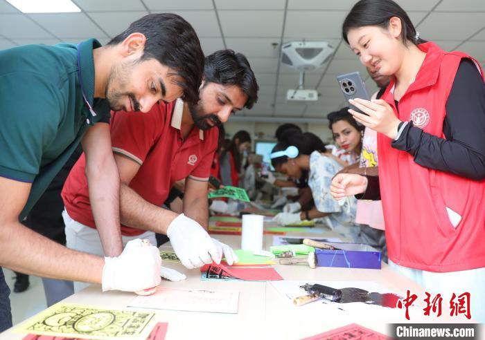 圖為外國留學(xué)生體驗?zāi)景婺戤?。曹建?攝