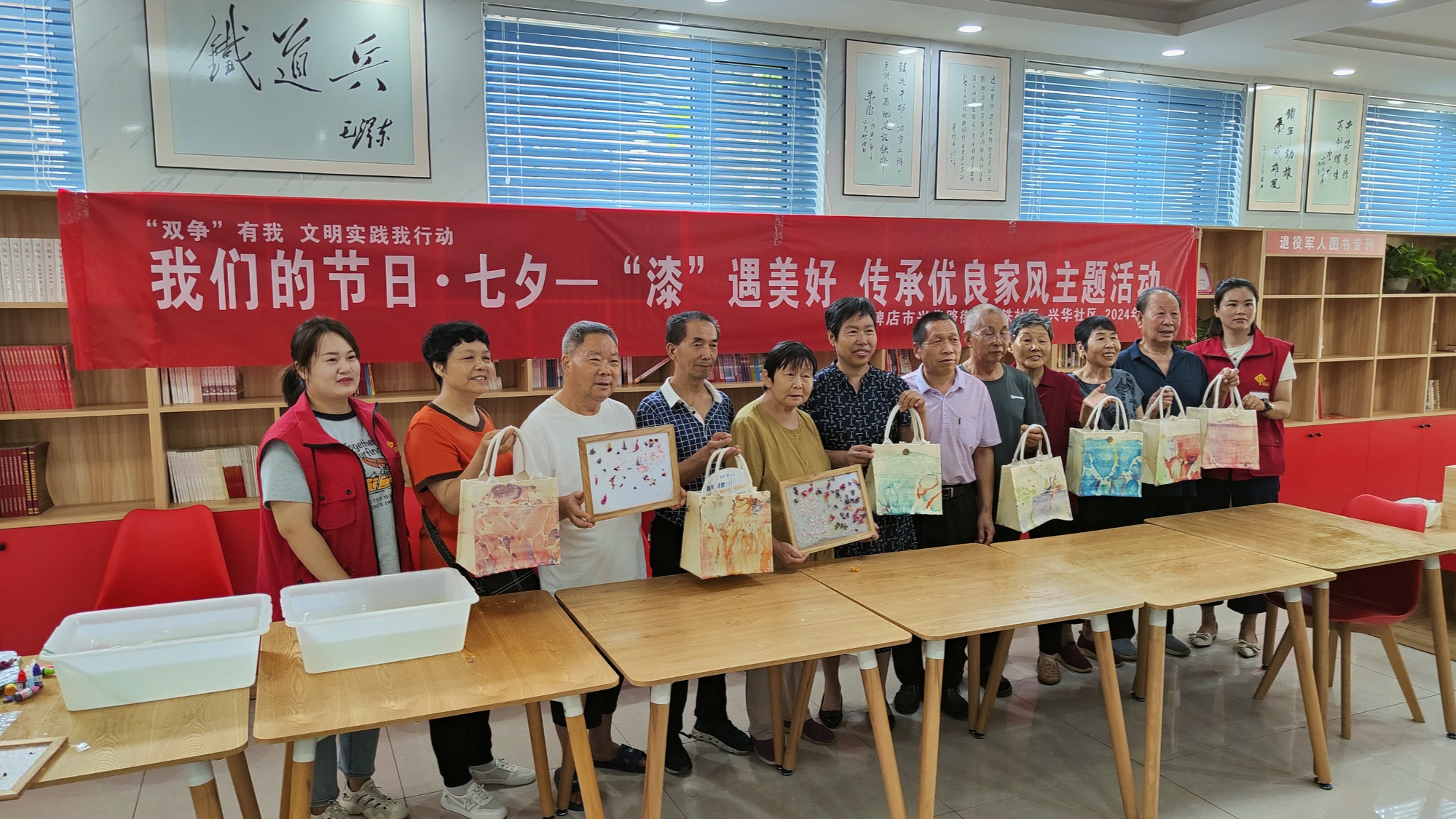 在中鐵社區(qū)群眾活動(dòng)中心,工作人員為居民介紹了漆包和古法造紙術(shù)的技藝特點(diǎn),并指導(dǎo)大家親手體驗(yàn)制作。