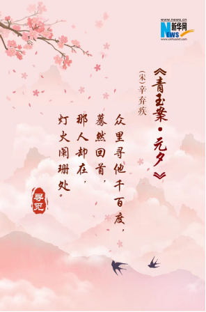 【意譯】在人群中千百次地尋找,不經(jīng)意間回首,卻發(fā)現(xiàn)那個人就在燈火闌珊處。