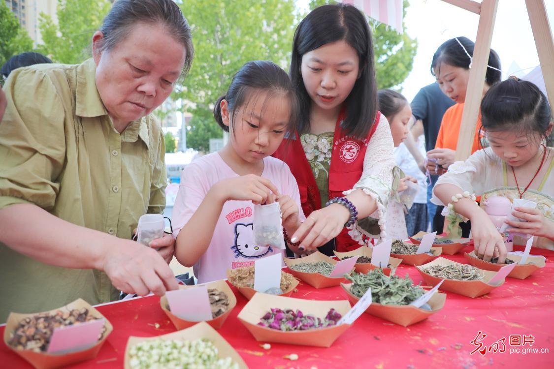 2025年8月20日傍晚,在安徽省六安市金安區(qū)東市街道開(kāi)展的“七夕”游園會(huì)上,志愿者在帶領(lǐng)市民和小朋友手工制作香囊。當(dāng)日,六安市金安區(qū)東市街道在轄區(qū)金水灣體育公園開(kāi)展“睦鄰東市·‘河’你共此夕”主題七夕游園會(huì)活動(dòng)。通過(guò)漆扇繪制、香囊制作、穿針乞巧等民俗體驗(yàn),吸引市民參與傳統(tǒng)文化互動(dòng),既傳承節(jié)日文化內(nèi)涵,又以文化活動(dòng)為紐帶促進(jìn)鄰里交流,營(yíng)造文明和諧社區(qū)氛圍,提升群眾獲得感和幸福感。(田凱平攝/光明圖片)
