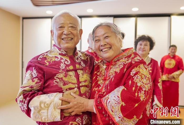 七夕將至,河北省邯鄲市老人走進叢臺區(qū)光明橋街道天璽苑社區(qū),參加“七夕迎金婚 共創(chuàng)好家風(fēng)”慶典,回憶半個世紀的愛情。金婚慶典儀式經(jīng)過牽手入場、夫妻對拜、執(zhí)子之手、回憶往昔等環(huán)節(jié),見證了金婚夫妻們相濡以沫、互敬互愛的美滿婚姻。金婚老人結(jié)合親身經(jīng)歷,分享家風(fēng)家訓(xùn)及愛情故事,講述家庭幸福的秘訣,“曬”出婚姻保鮮的秘籍,分享婚姻的經(jīng)營智慧。圖為8月6日,金婚夫妻合影留念。王倩倩 攝