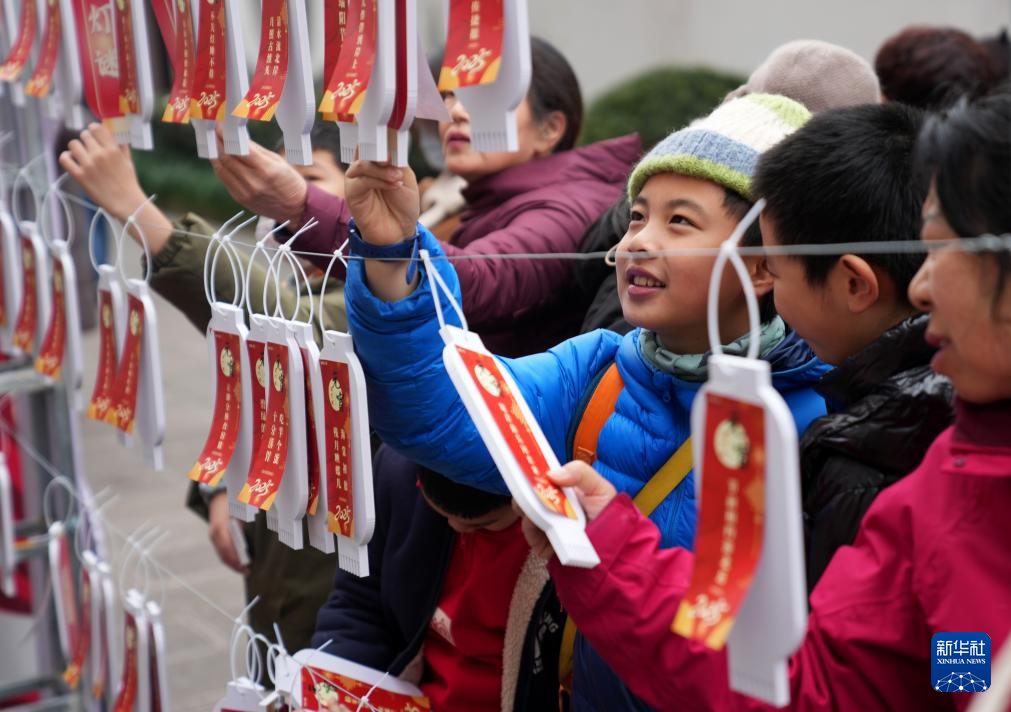 2月11日,湖南省衡陽市衡陽縣在明翰廣場開展猜燈謎活動,吸引眾多市民參與。
