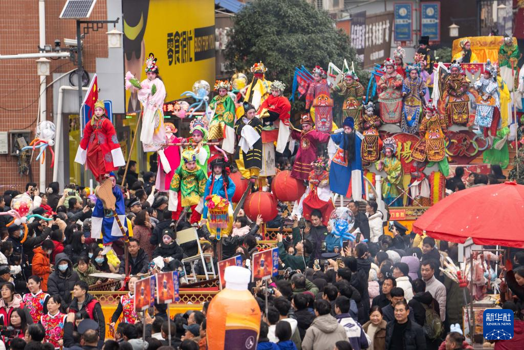 2月11日,在湖南省汨羅市長樂鎮(zhèn),人們參加抬閣故事會?!伴L樂抬閣故事會”是長樂鎮(zhèn)當?shù)匾豁梻鞒星甑脑?jié)民俗活動,2011年入選國家級非物質文化遺產擴展項目名錄。