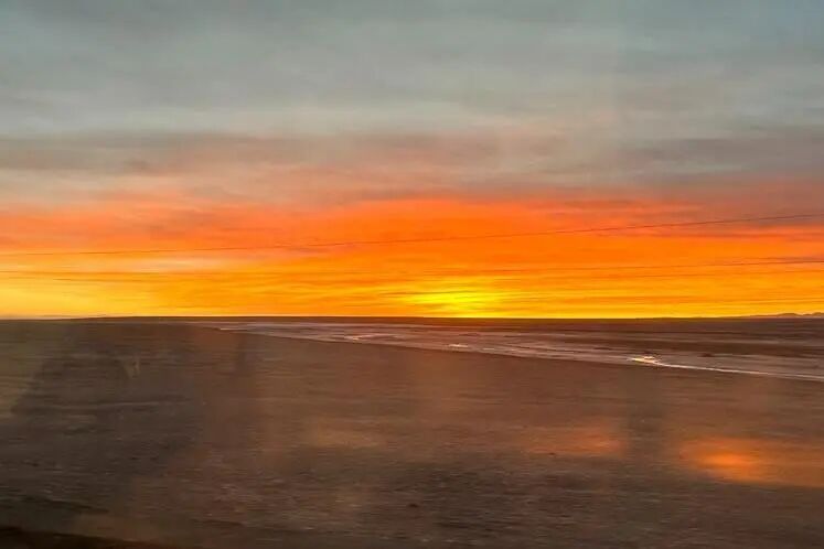 透過(guò)車(chē)窗,我看到的是雪山連接著白云,草地包裹著河灘,大地養(yǎng)育著生命,晚霞撫慰著山河。