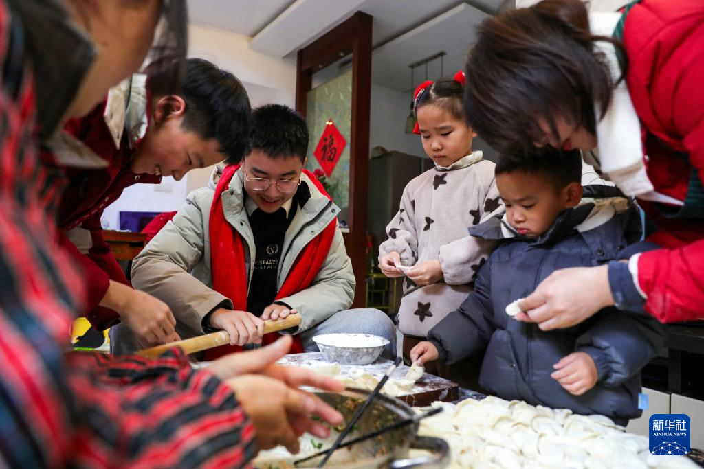 2月16日,在重慶西南大學(xué),工作人員和留校學(xué)生組成“臨時家庭”一起包餃子慶新春。新華社發(fā)(秦廷富攝)