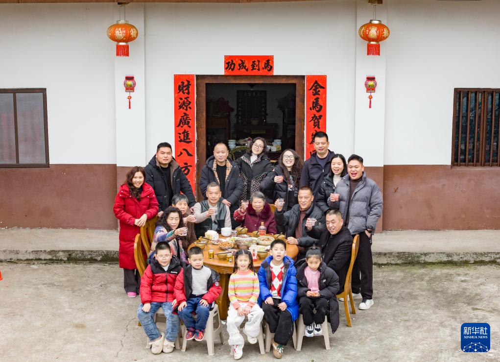 2月16日,在四川省南充市順慶區(qū)清平村,村民陳俊堯一家祖孫四代吃團(tuán)年飯。新華社發(fā)(彭珉翔攝)