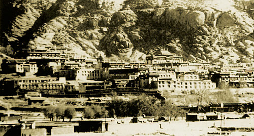 藏傳佛教格魯派寺院組織是舊西藏封建農(nóng)奴社會(huì)巨大的領(lǐng)主集團(tuán),20世紀(jì)中期西藏住寺僧尼人數(shù)占總?cè)丝诘?0%以上。在達(dá)賴?yán)锏慕y(tǒng)領(lǐng)下,拉薩甘丹寺、哲蚌寺和色拉寺堪布直接參加噶廈(西藏地方政府)會(huì)議,具有地方政府的最高決策權(quán)和一系列封建特權(quán)。經(jīng)濟(jì)上,到1959年以前,寺院和上層僧侶所占耕地占西藏全部耕地的36.8%,并占有大量的牧場(chǎng)、牲畜和農(nóng)奴,聚斂了大量的社會(huì)財(cái)富,成為西藏三大領(lǐng)主重要的組成部分。圖為20世紀(jì)50年代以前的色拉寺全景。藏傳佛教格魯派寺院組織是舊西藏封建農(nóng)奴社會(huì)巨大的領(lǐng)主集團(tuán),20世紀(jì)中期西藏住寺僧尼人數(shù)占總?cè)丝诘?0%以上。在達(dá)賴?yán)锏慕y(tǒng)領(lǐng)下,拉薩甘丹寺、哲蚌寺和色拉寺堪布直接參加噶廈(西藏地方政府)會(huì)議,具有地方政府的最高決策權(quán)和一系列封建特權(quán)。經(jīng)濟(jì)上,到1959年以前,寺院和上層僧侶所占耕地占西藏全部耕地的36.8%,并占有大量的牧場(chǎng)、牲畜和農(nóng)奴,聚斂了大量的社會(huì)財(cái)富,成為西藏三大領(lǐng)主重要的組成部分。