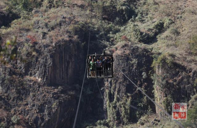 居住在金沙江兩岸的村民通過溜索過江。新華社記者江宏景 攝