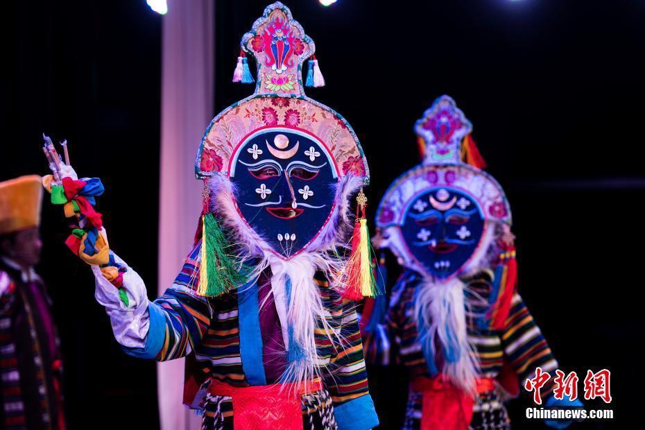 圖為藏戲藍(lán)面具表演。中新社記者 何蓬磊 攝