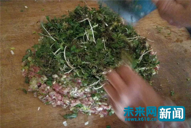 母女二人不僅開(kāi)開(kāi)心心地挖到了地菜,楊媽媽還真的用地菜包了一頓餃子,搟了一次手工面,把地菜全部盛到女兒碗里。