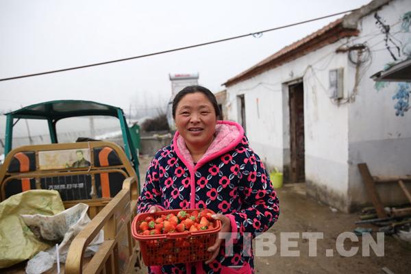 圖為記者走進(jìn)東陵村現(xiàn)代新型產(chǎn)業(yè)園的草莓大棚 攝影:次仁頓珠