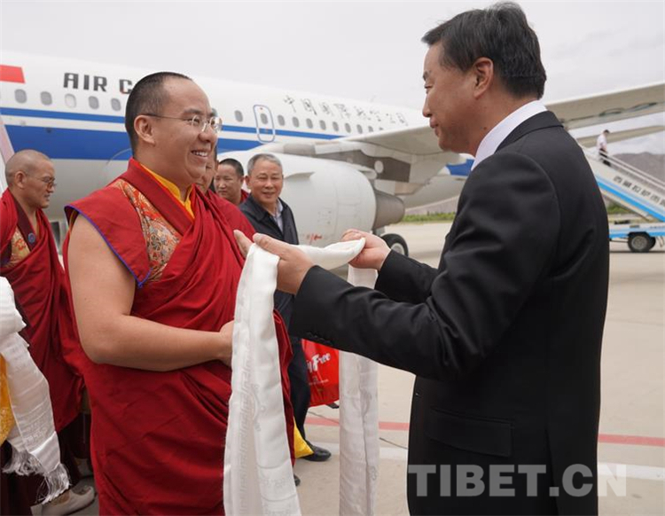 中國西藏網(wǎng)訊 6月的拉薩天藍(lán)如鏡、白云朵朵,沐浴在日光下的拉薩溫暖和煦。6月11日,全國政協(xié)常委、中國佛教協(xié)會(huì)副會(huì)長班禪額爾德尼o確吉杰布乘機(jī)抵達(dá)拉薩。