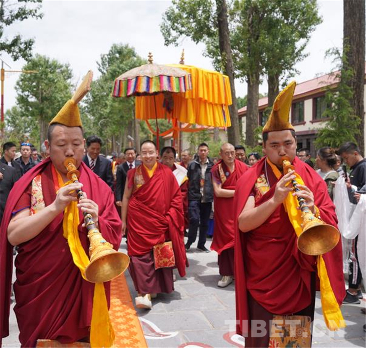 來自拉薩的僧眾代表和信教群眾代表,帶著虔誠和喜悅的心情,滿懷期待十一世班禪的到來。當(dāng)大院內(nèi)響起法號(hào)聲時(shí),早已在此等候的僧俗信教群眾紛紛翹首踮足,一睹十一世班禪的風(fēng)采。
