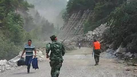 (5)2017年8月,九寨溝發(fā)生地震,亂石飛瀉處,眾人逃離時,武警戰(zhàn)士張國全卻逆行沖向塌方地段。