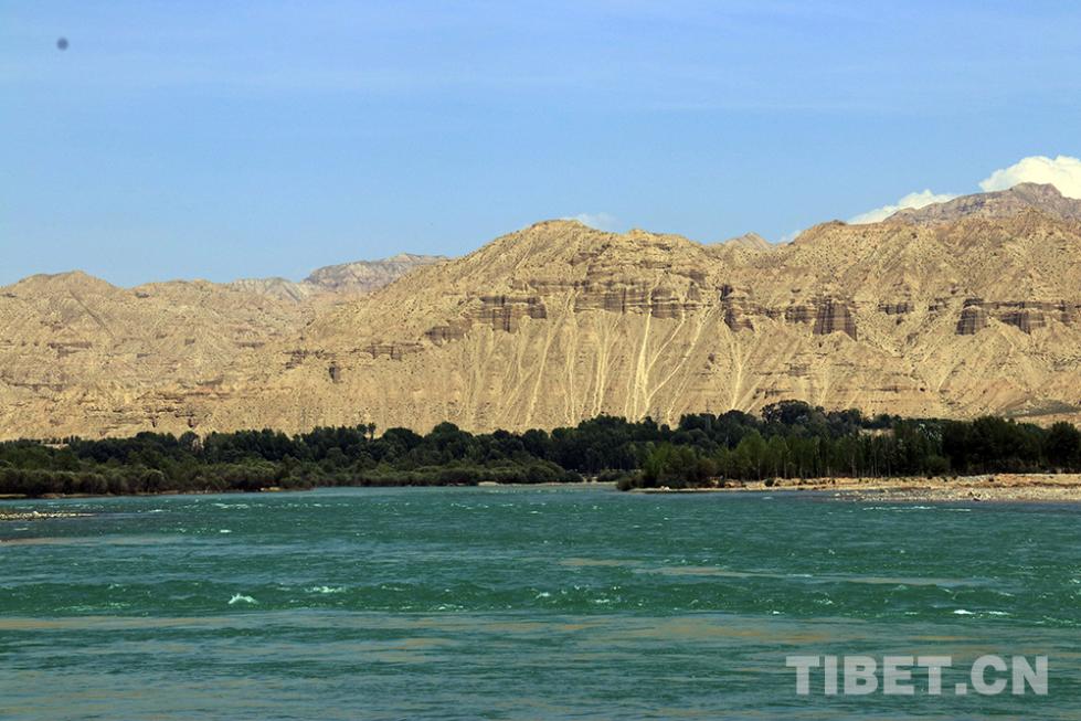 班禪大師一行在貴德縣當(dāng)?shù)馗刹康呐阃略邳S河岸邊參觀。