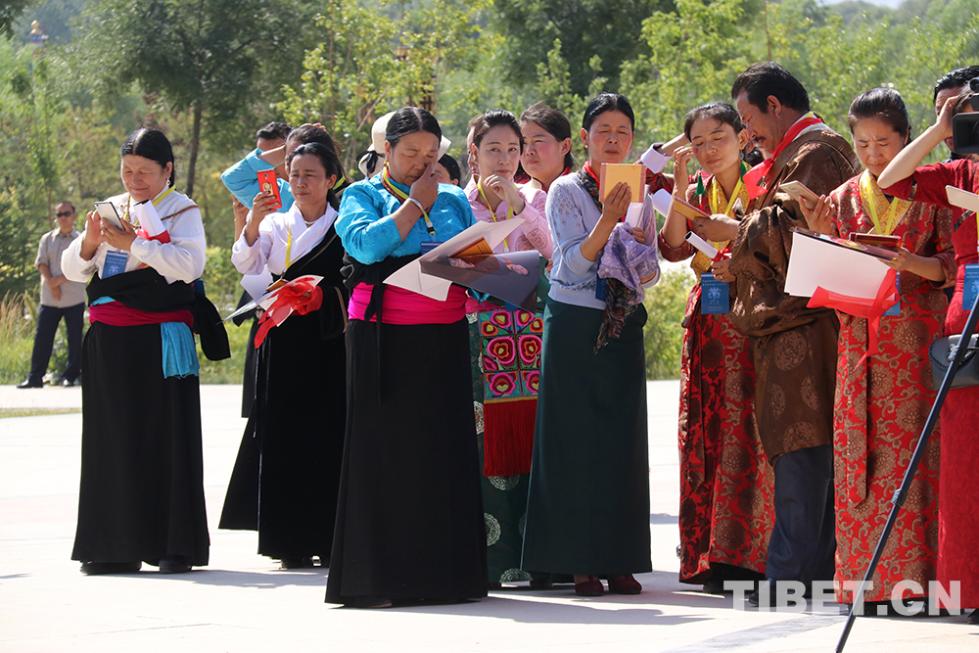 最后,班禪大師一行來到位于黃河岸邊的“中華福運(yùn)輪”,“中華福運(yùn)輪”轉(zhuǎn)經(jīng)輪主體高42米,于2012年獲頒吉尼斯世界紀(jì)錄?!爸腥A福運(yùn)輪”坐北向南,由黃河民俗博物館、倒影池、轉(zhuǎn)經(jīng)塔三部分組成。班禪大師一行,背對(duì)著翻騰著青色波濤的黃河坐下,面對(duì)著“中華福運(yùn)輪”,班禪帶領(lǐng)僧眾念誦祈愿經(jīng)文,祈禱世界和平、國(guó)泰民安、五谷豐登、眾生幸福。(中國(guó)西藏網(wǎng)文、圖/袁星宇)