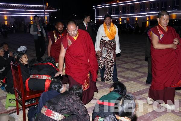 △班禪前往治多縣幸福敬老院為老人們摸頂賜福。