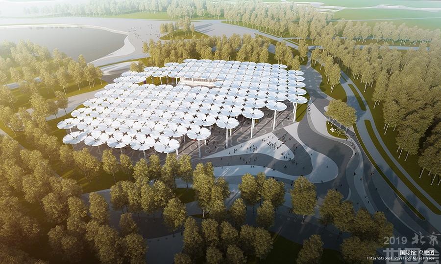 國際館在北京世園會(huì)會(huì)期承擔(dān)世界各國、國際組織室內(nèi)展覽以及舉辦國際園藝競(jìng)賽的功能。它由94把花傘構(gòu)成,如同一片花海飄落在園區(qū)里。無論是在高空俯瞰,還是在傘下信步,游客都會(huì)被這一片獨(dú)特的花海所吸引而流連忘返。當(dāng)夜幕降臨,花傘葉片上的投射燈將會(huì)為場(chǎng)館營造出多姿多彩的夜景。