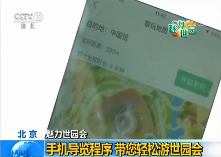 央視記者 張偉澤:這個(gè)智玩地圖,我們現(xiàn)在比如說去中國(guó)館,這里有個(gè)導(dǎo)航 現(xiàn)在顯示中國(guó)館離我有332米,4分鐘就能到達(dá),我們現(xiàn)在開始導(dǎo)航,跟著導(dǎo)航去尋找中國(guó)館。