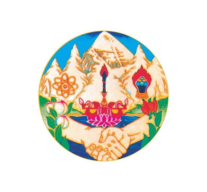圖為十世班禪大師親自設(shè)計(jì)并請畫家洛松向秋付諸筆端的援助西藏發(fā)展基金會徽標(biāo)。