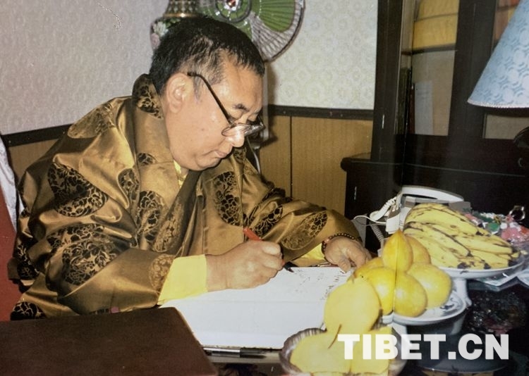 圖為十世班禪大師在中國藏語系高級佛學(xué)院院長辦公室。圖片翻拍自《十世班禪大師劉隆攝影集》